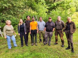 Aber vor allem die praktische Arbeit „am Boden“ war für alle interessant. Es wurden fünf verschiedene Anschüsse in Gruppenarbeit untersucht und dann die Ergebnisse allen interpretiert. Dabei wurden Äserschuss, Krellschuss, Weichschuss, Laufschuss vorne/hinten und Kammerschuss identifiziert. Selbst die kleinsten Hinweise konnten gut gedeutet werden, Länge und Farbe der gefundenen Haare, Wildpret und Fasern, Knochen mit Knochenmark, Zahnsplitter, Lungenstückchen etc. Eindrücklich war auch der Beschuss vor dem Betttuch, der zeigte, wie groß die Verteilung der Pirschzeichen im Gelände ist, oft viele Meter vom Anschuss entfernt und in breitem Winkel verteilt. Auch der verbreitete Irrglaube, dass ein Kugelriss einen Fehlschuss bedeute, konnte ausgeräumt werden.